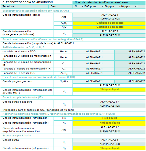Gases especiales para los diferentes tipos de espectrometría